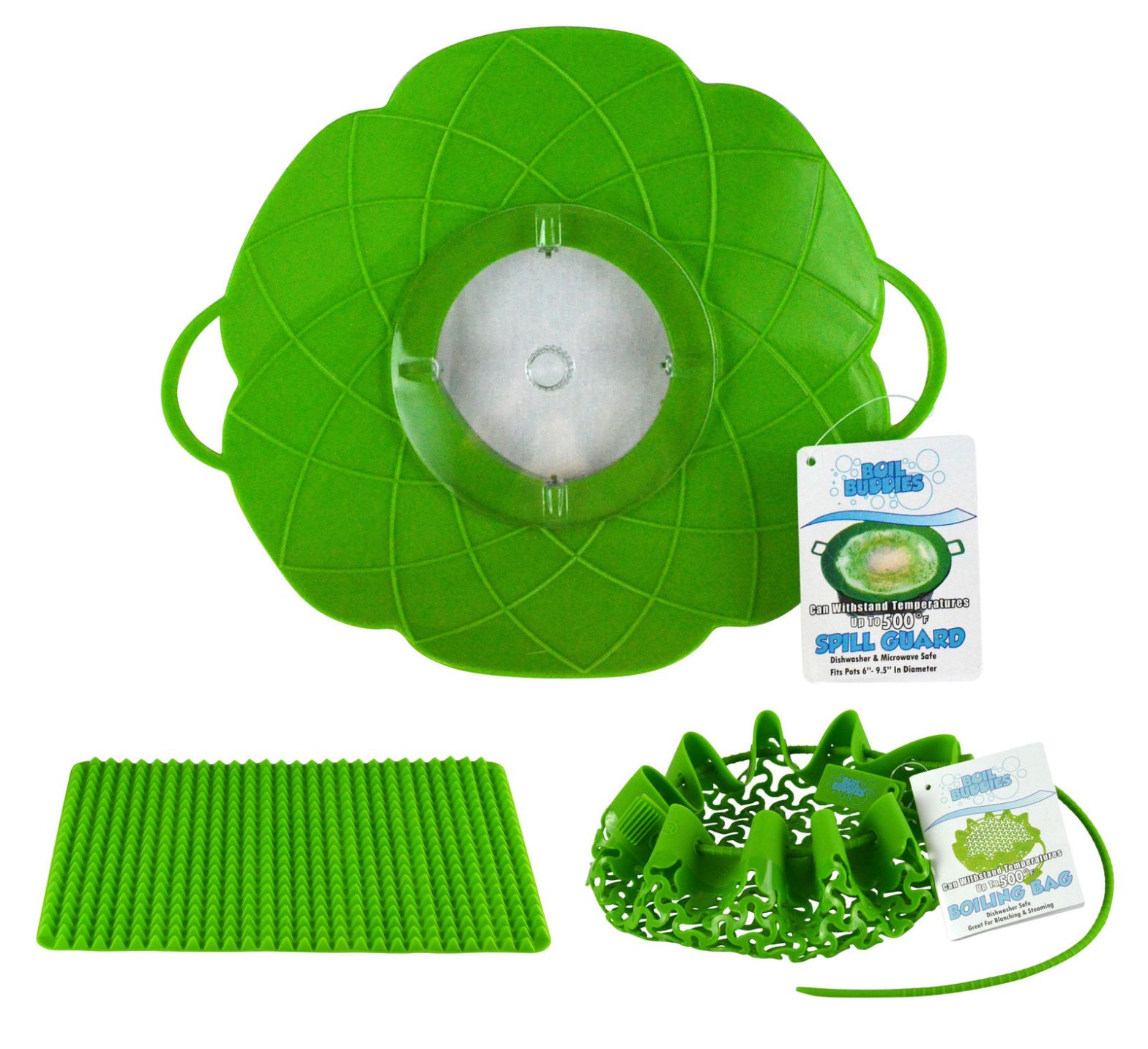– ¡JUEGO DE 3! – Incluye un protector contra derrames de hervir los amigos, una bolsa para hervir los amigos de hervir y un tapete para hornear artículos para el hogar saludables.