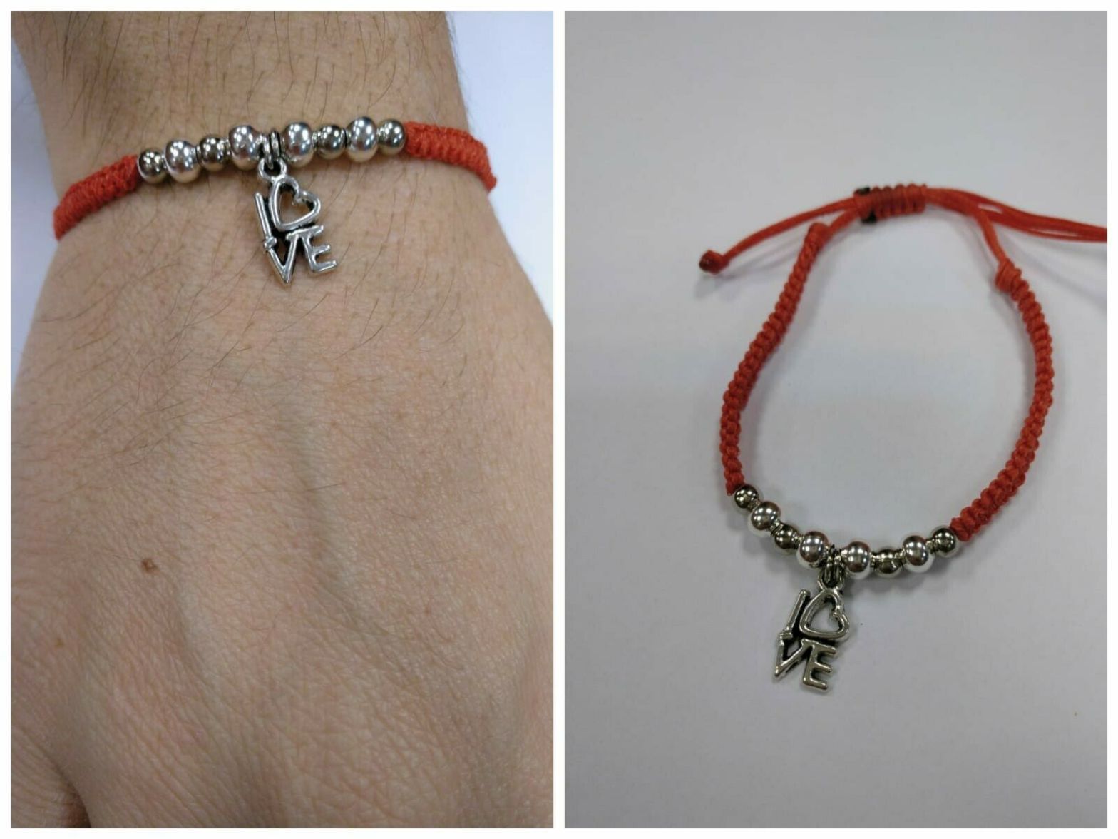 Pulsera negra con cuentas y LOVE plateado con un corazón. Un bonito regalo personal. Hecho a mano. http://ebay.us/uaq2Y6